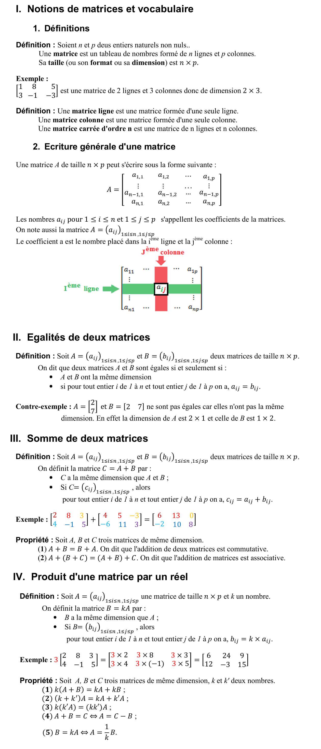Matrices : les opérations